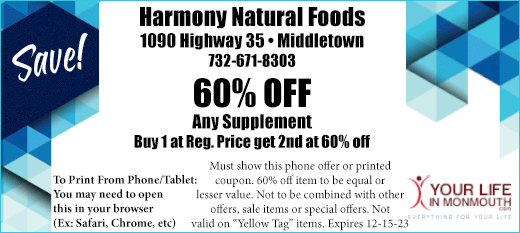 New Harmony Natural Foods is conveniently located at 1090 Highway 35 in Middletown. We have moved to a larger store to provide our customers in the Middletown area with everything they need for their health requirements. Our store has a full stock of the latest and most popular brands of health related items. Whatever your nutritional needs or fitness goals, we can help you find the product to allow you to achieve them. We carry nutritional supplements, vitamins, natural beauty products, natural foods and much more!